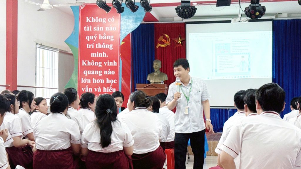 Điểm nhấn quan trọng của hội thảo là phần tập huấn sơ cứu đột quỵ. Bác sĩ Nguyễn Đức Thăng đã trực tiếp hướng dẫn học sinh cách nhận biết sớm các dấu hiệu của đột quỵ, cũng như thực hành những thao tác sơ cứu cơ bản. Đây là kỹ năng đặc biệt quan trọng, bởi sự can thiệp kịp thời có thể cứu sống tính mạng người khác và giảm thiểu di chứng nặng nề.