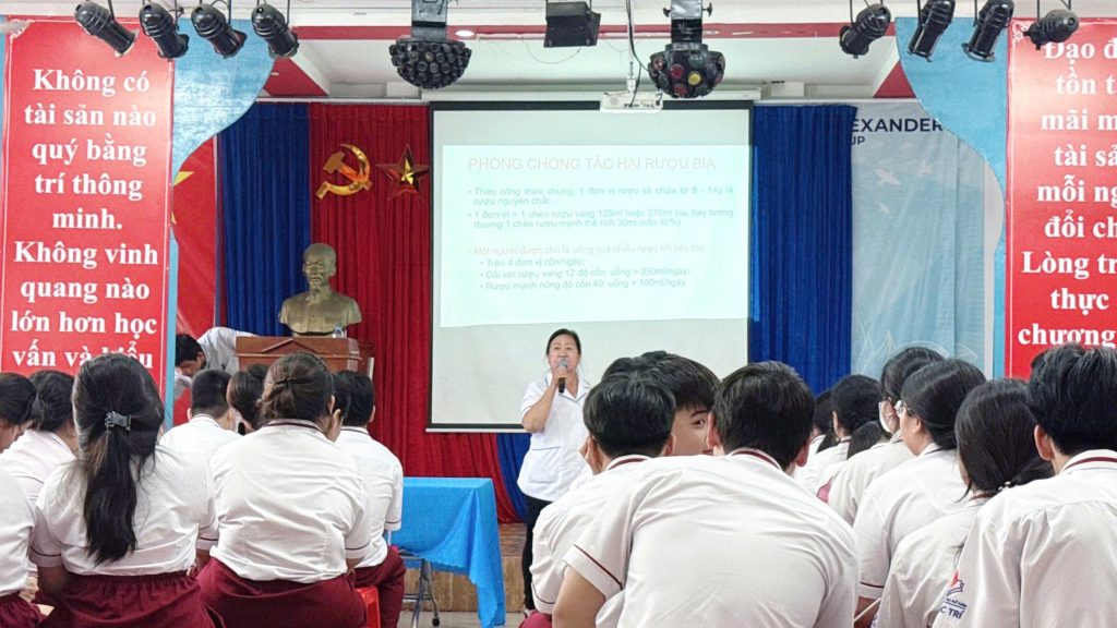 Mở đầu chương trình, bác sĩ đã chia sẻ về thực trạng và tác hại của việc sử dụng thuốc lá, thuốc lá điện tử và rượu bia trong giới trẻ hiện nay. Học sinh được phân tích sự khác biệt giữa thuốc lá truyền thống và thuốc lá điện tử. Từ đó nhận thức rõ ràng rằng ở bất kỳ hình thức nào, thuốc lá đều gây ảnh hưởng nghiêm trọng đến sức khỏe. Đồng thời, các em còn được định hướng giải pháp để biết cách nói “KHÔNG” với thuốc lá, rượu bia và các chất kích thích khác, xây dựng lối sống lành mạnh, tích cực.