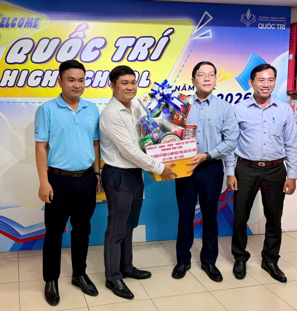Sáng nay, Trường THCS & THPT Quốc Trí vinh dự được đón tiếp Đoàn đại diện Ủy ban nhân dân Phường Phú Lâm đến thăm và tặng quà nhân kỷ niệm 43 năm Ngày Nhà giáo Việt Nam (20/11/1982 – 20/11/2025).